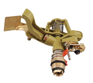 Металлический фрегат-ороситель пульсирующий предназначен для кругового полива. Так же можно настроить секторный полив. Ороситель фиксируется на специальном штативе для увеличения площади полива. Сектор полива: до 360 градусов, оснащен функцией блокировки отдельно выбранного сектора.