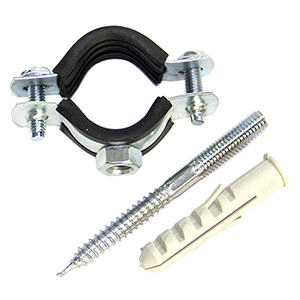 Металлический хомут с резиновым профилем и гайкой используется для крепления труб к стенам (верт./горизонт.), к потолку, полу. EPDM профиль (маслостойкая резина) предназначен для снижения уровня шума, уменьшения вибрации, а также частичной компенсации тепловых расширений.