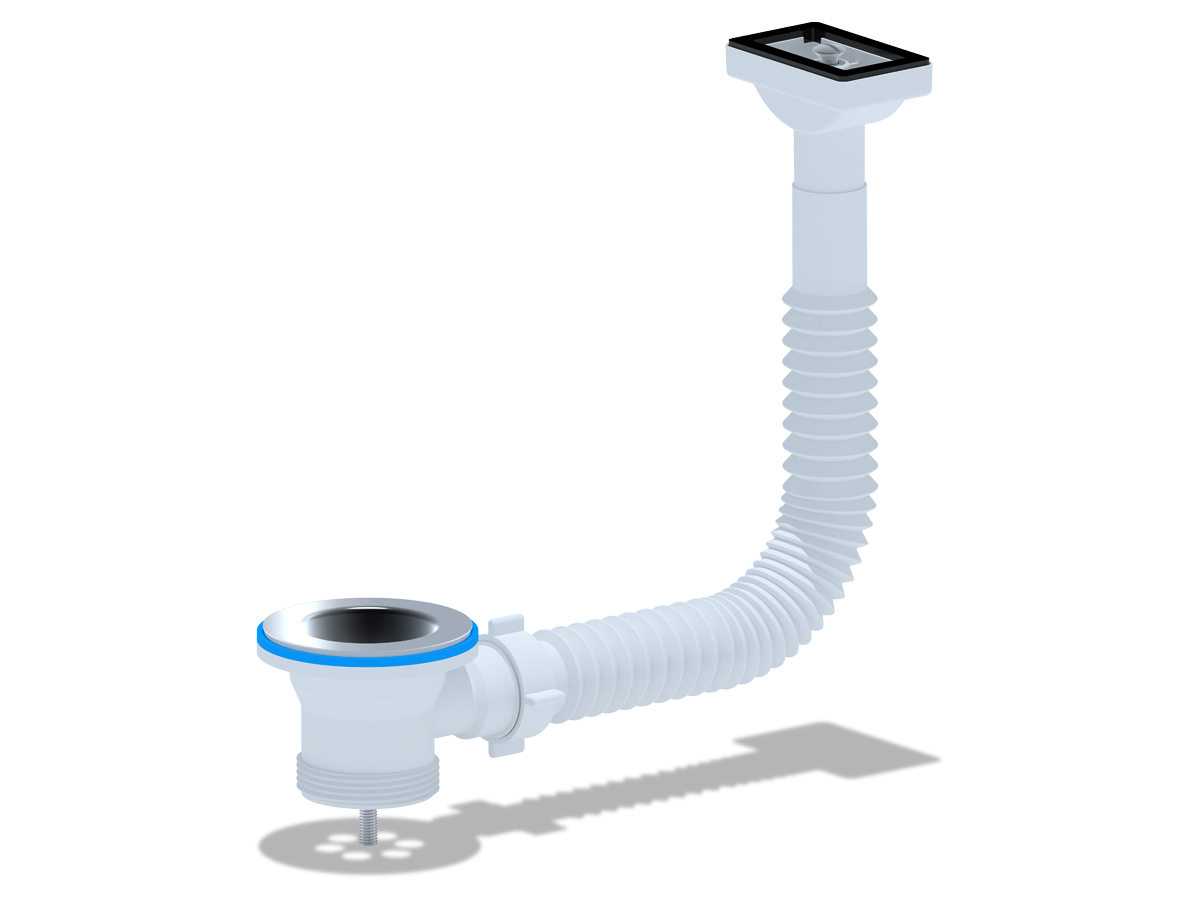 Выпуск с нержавеющей решеткой 70мм и прямоугольным горизонтальным переливом. Для моек со сливным отверстием 50мм