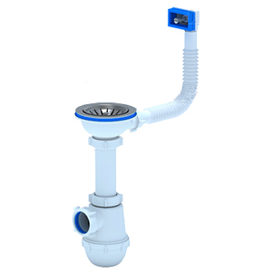 Сифон для кухонных моек с диаметром сливного отверстия 90мм, бутылочного типа с увеличенным корпусом. С разборным выпуском и нержавеющей решеткой диаметром, с гибким квадратным переливом мойки из композитных материалов. Корпус перелива оборудован универсальной прокладкой для круглых и прямоугольных моек, нужная сторона прокладки достигается путем переворота. Выход для подключения к канализации 40мм