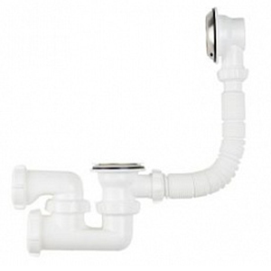 Сифон для ванны регулируемый V210 – это полноценный комплект сифона для ванны, «купил и поставил». В комплектацию входит сам сифон, стандартный перелив для ванны, цепочка и пробка, и все переходники, прокладочные кольца, болты. Выпуск оснащен нержавеющей решеткой. Необходимо отдельно приобрести гофротрубу для подключения к канализации нужной длины. Отличительная особенность этого сифона для ванны - в его минимальных габаритах, его высота всего 110 мм от нижней точки ванны, что значительно облегчает установку, при этом не сказывается на его превосходной проточности. Сифон оснащен дополнительным отводом, который позволяет направить гофротрубу в нужную сторону, а также гайкой-заглушкой, которая поможет провести очистку сифона без его разбора.