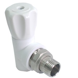 Вентиль для радиатора "RTP" (угловой, белый) (25х3/4") в интернет-магазине комплектующих для водоснабжения, отопления, канализации, водопроводной арматуры.